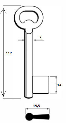 Klíč historický II. číslo 2Hotový historický tvarový klíč se šířkou praporku 14 mm.Historický klíč široký.Číslo je vyražené na hlavě klíče.Ilustrační foto.